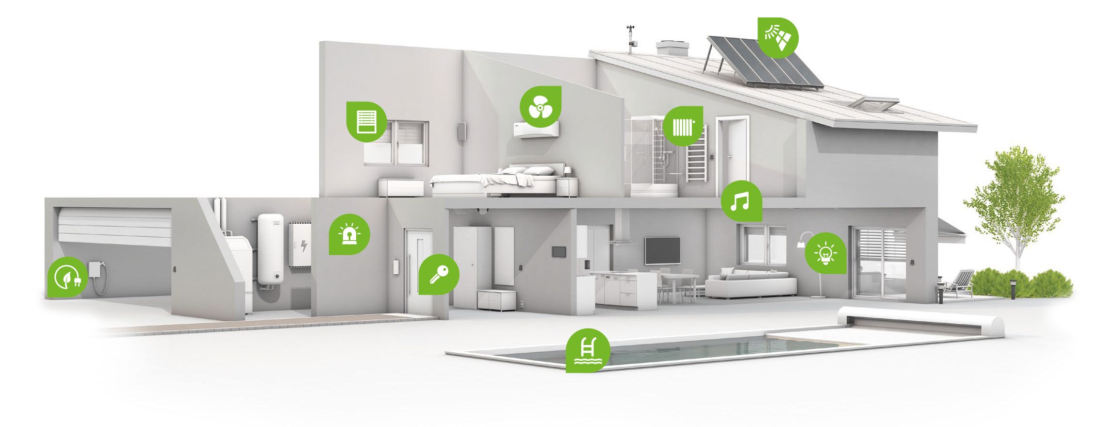 De foto hiernaast geeft een kleine beschrijving van wat mogelijk is. Leef als geen ander, laat je thuis de dagdagelijkse dingen overnemen, zoals de juiste avondsferen. Jouw woning kan eenvoudig bediend worden. Ze waakt over alle bewoners, bespaart op een slimme manier aan energie, maakt je gelukkig, en zo veel meer.